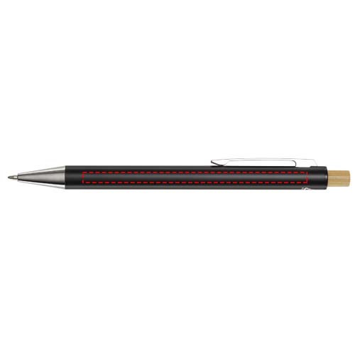 Der Cyrus Kugelschreiber ist aus recyceltem Aluminium hergestellt, was weniger Energie benötigt als die Herstellung von Aluminium aus Rohstoffen. Es reduziert außerdem die Abfallmenge auf Mülldeponien und trägt dazu bei, natürliche Ressourcen zu schonen und Treibhausgasemissionen zu reduzieren. Druckknopf ist aus Bambus gefertigt. Tintenfarbe: Schwarz. Schreiblänge: 800 Meter. Spitzengröße: 1,00 mm.