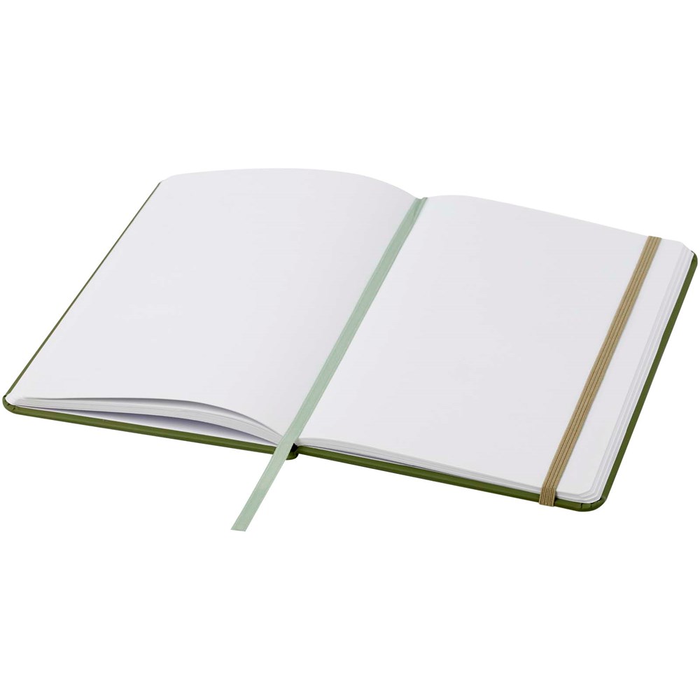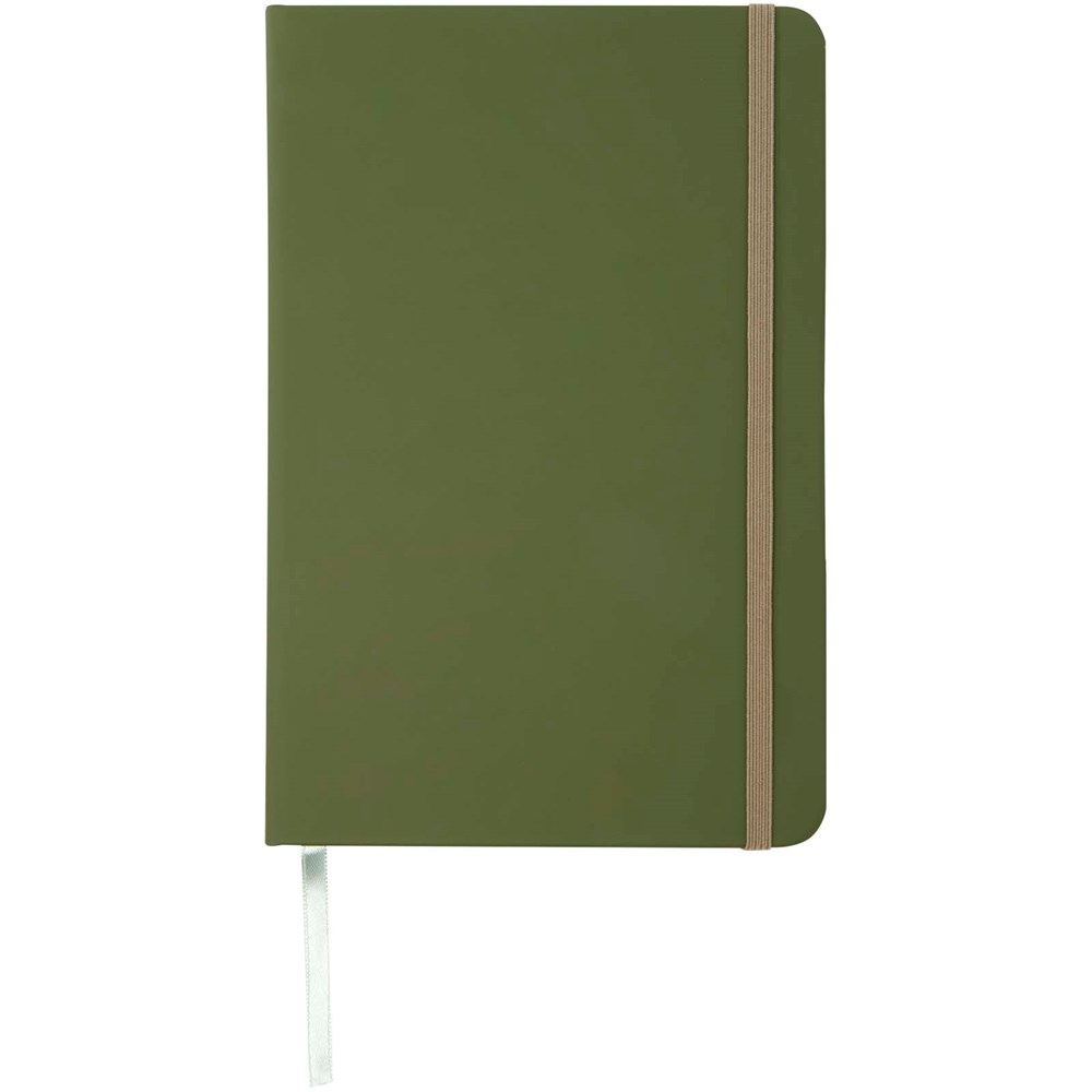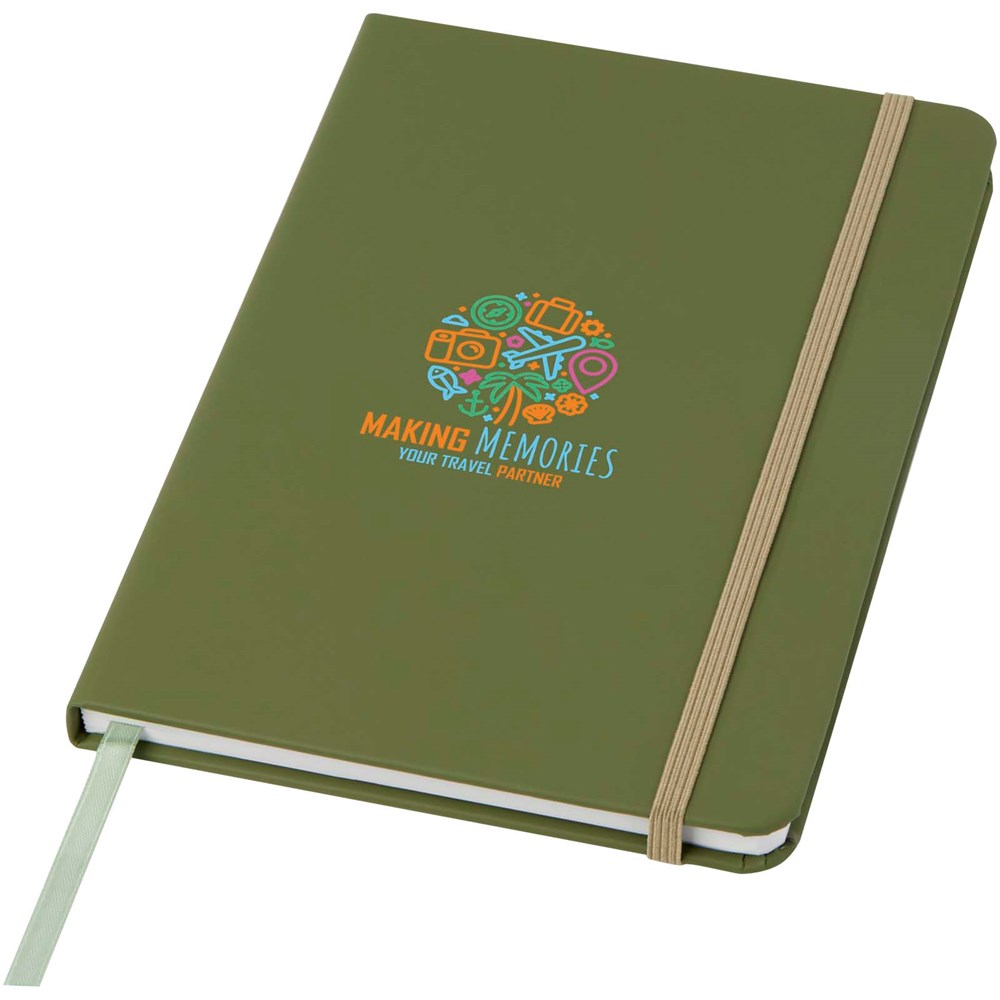 A5 Notizbuch mit farblich passendem elastischen Verschluss und Leseband. Inkl. 96 Blatt (60 g/m²), blanko.