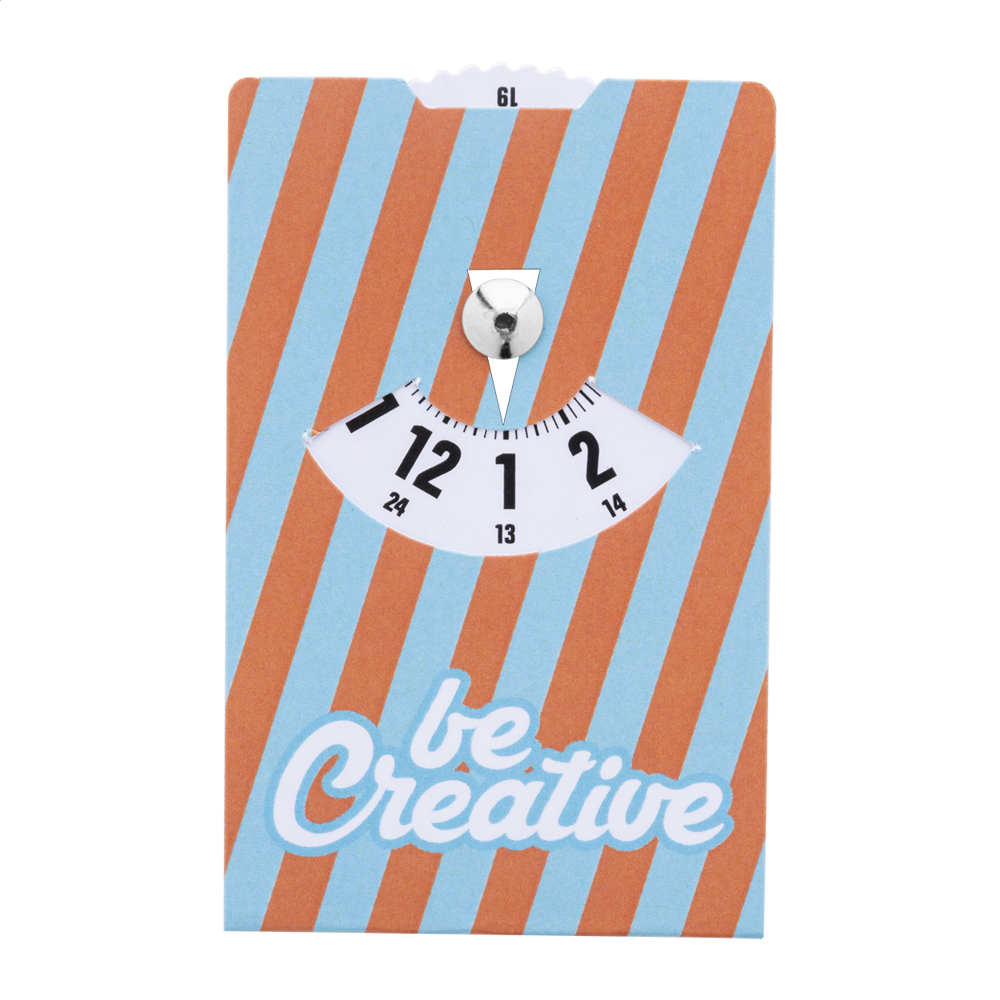 Individuelle Parkuhr aus laminiertem Papier im kompakten Kreditkartenformat. Der Preis ist inkl. vollfarbiger Bedruckung. Mindestmenge: 100 Stk. Dieser Artikel entspricht nicht der StVO.