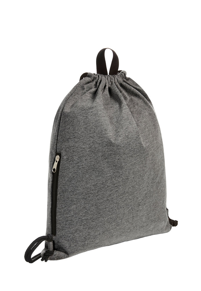 großer Zugbeutel-Rucksack aus angenehm feinem Jersey; Hauptfach mit seitlicher Reißverschluss-Tasche; Kordelzug; Trageschlaufe