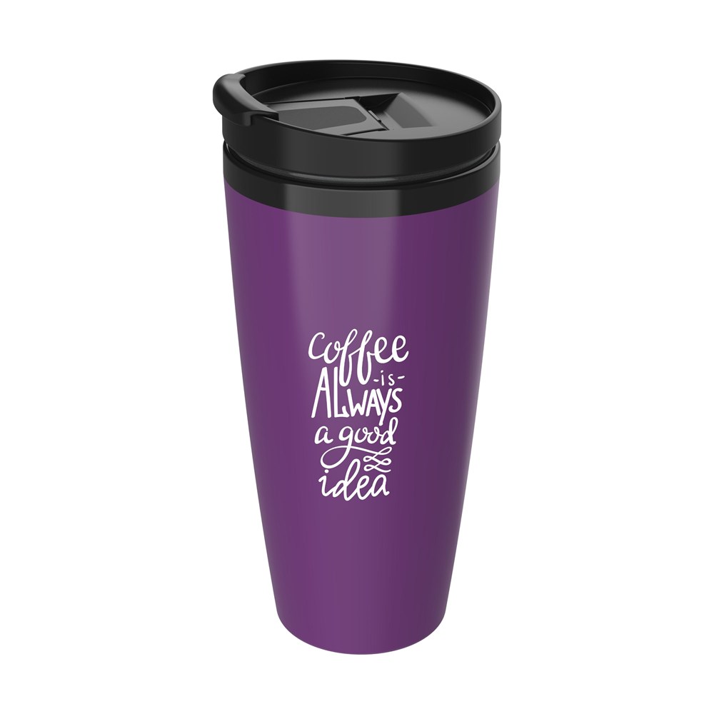Doppelwandiger Isolierbecher aus Kunststoff mit verschraubbarem Deckel und leicht hochgezogenem... mehr