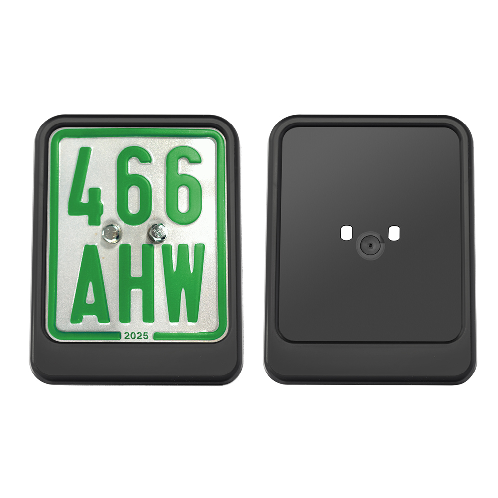aus ca. 100 % recyceltem Kunststoff. Bohrung durch Nummernschild notwendig